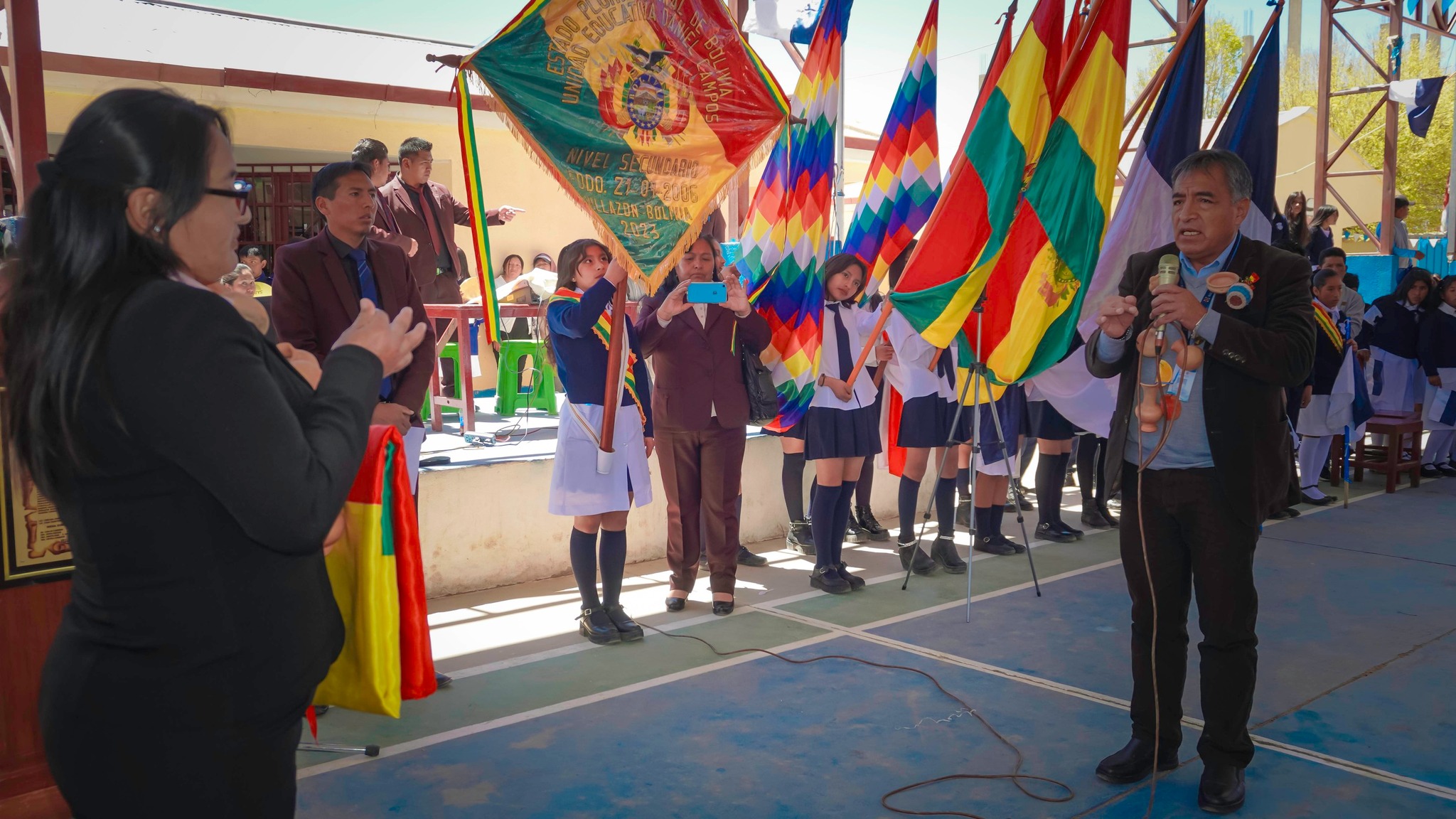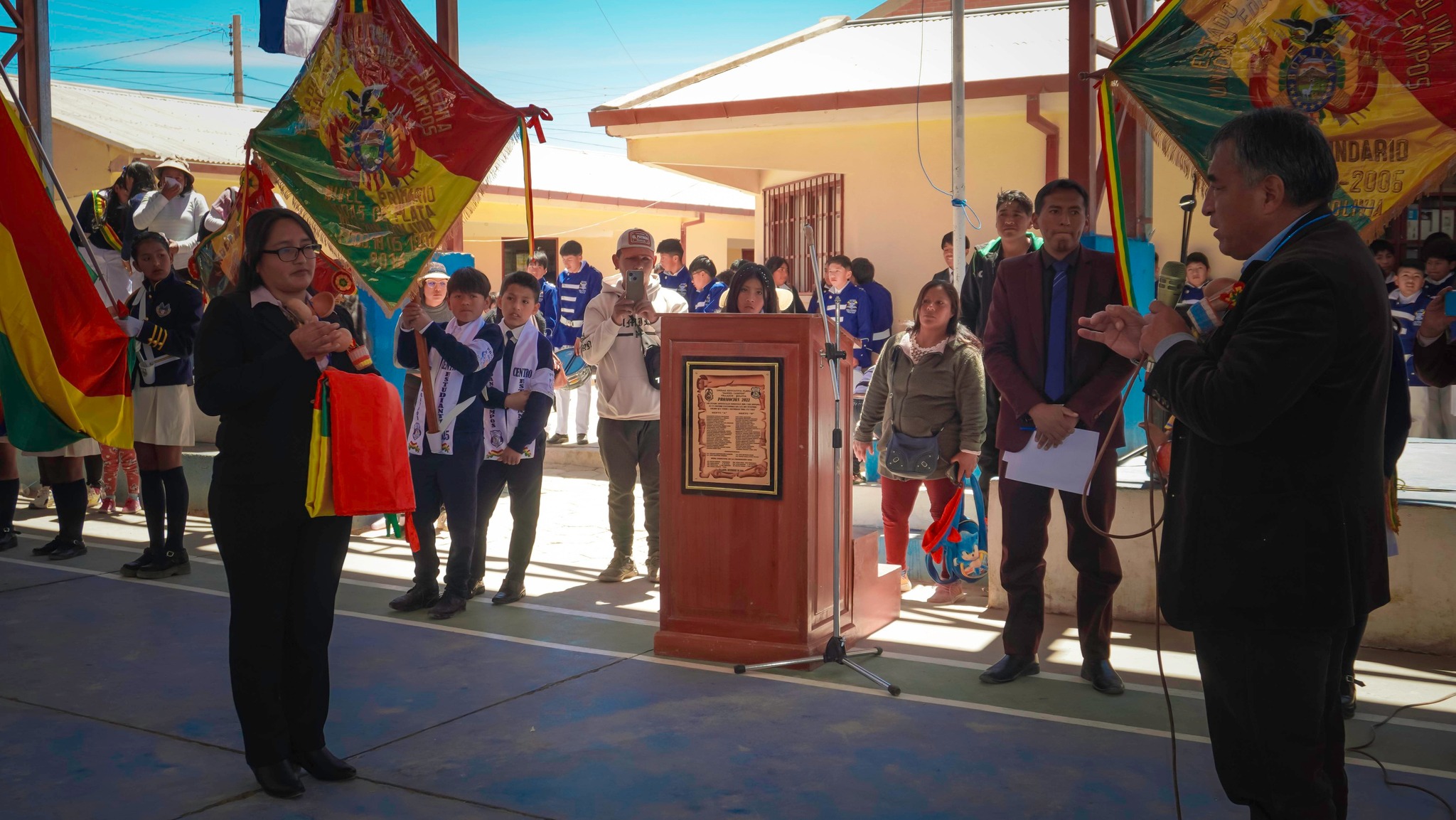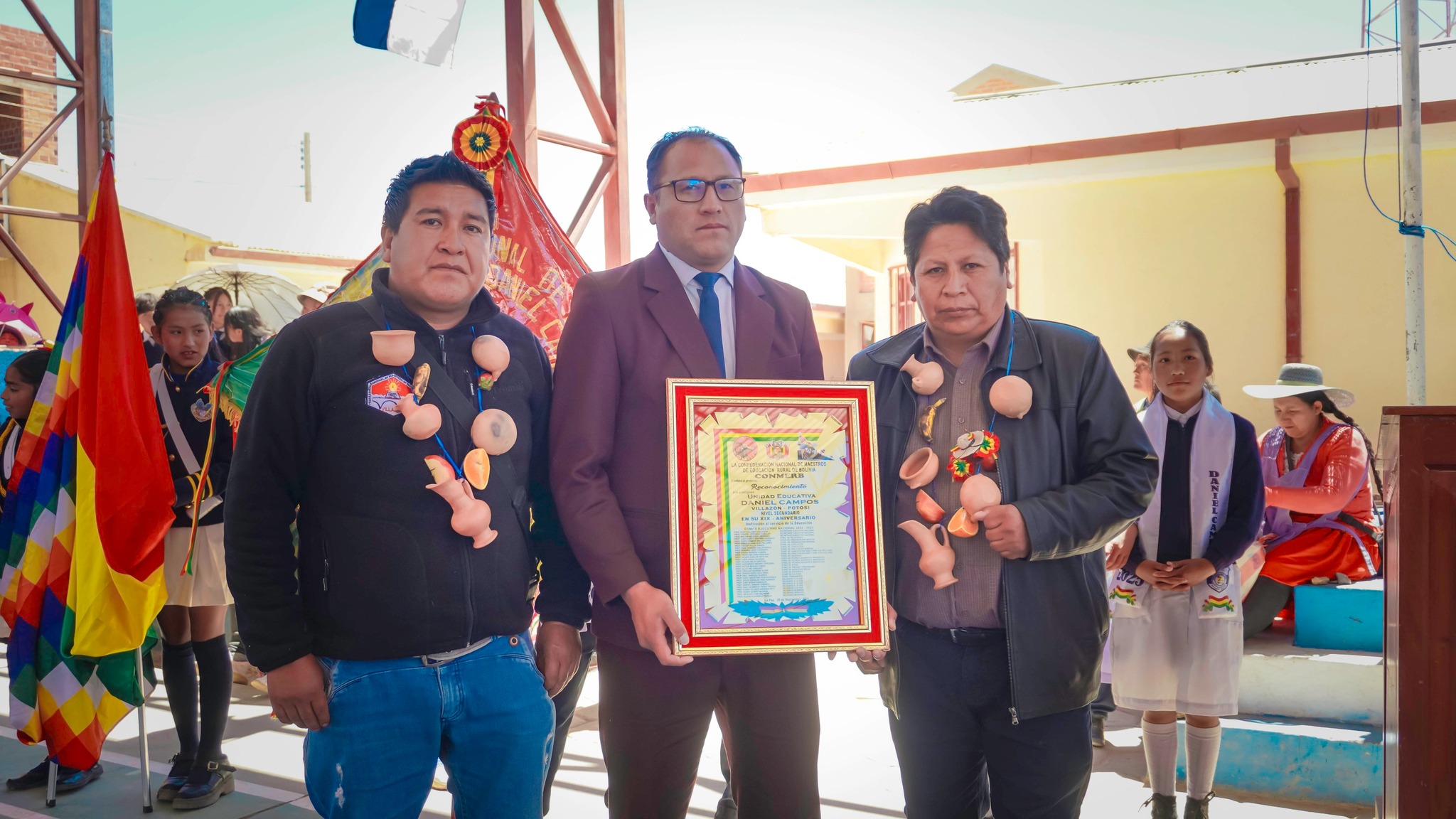 En una jornada histórica para la educación de Villazón, la 𝙐𝙣𝙞𝙙𝙖𝙙 𝙀𝙙𝙪𝙘𝙖𝙩𝙞𝙫𝙖 𝘿𝙖𝙣𝙞𝙚𝙡 𝘾𝙖𝙢𝙥𝙤𝙨 𝙘𝙚𝙡𝙚𝙗𝙧𝙤́ 𝙘𝙤𝙣 𝙤𝙧𝙜𝙪𝙡𝙡𝙤 𝙨𝙪 34º 𝙖𝙣𝙞𝙫𝙚𝙧𝙨𝙖𝙧𝙞𝙤 𝙚𝙣 𝙣𝙞𝙫𝙚𝙡 𝙋𝙧𝙞𝙢𝙖𝙧𝙞𝙤 𝙮 19º 𝙖𝙣𝙞𝙫𝙚𝙧𝙨𝙖𝙧𝙞𝙤 𝙚𝙣 𝙣𝙞𝙫𝙚𝙡 𝙎𝙚𝙘𝙪𝙣𝙙𝙖𝙧𝙞𝙤, con la participación del Director Departamental de Educación de Potosí, Lic. Javier Ortega, el Director Distrital, Lic. Rensn Carlos Ayaviri, autoridades educativas, estudiantes y padres de familia.