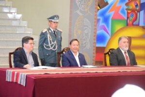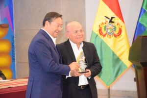 El presidente Luis Arce Catacora entregó reconocimientos a 27 empresas e instituciones estatales que contribuyen al pago del Bono Juancito Pinto 2025, beneficio destinado a promover la permanencia escolar en todo el país.