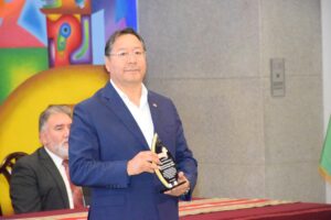 El presidente Luis Arce Catacora, en un acto realizado este martes en la Casa Grande del Pueblo, entregó reconocimientos a las 27 empresas e instituciones estatales que aportan al pago del Bono Juancito Pinto 2025, un beneficio que incentiva la permanencia escolar y reduce la deserción estudiantil en el sistema educativo boliviano.
